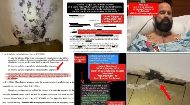 | Late 2020 | Property Catastrophe Begins: Purchase of property from Lucien Tujague Jr. with promises of a “brand new home,” immediately revealing structural defects, toxic mold, and pest infestations. | Initiation of severe financial and health crisis. |